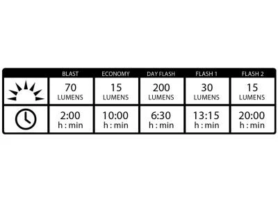 ► Jusqu’à 12h00 d’autonomie en mode Flash et 5h00 en mode normal économique